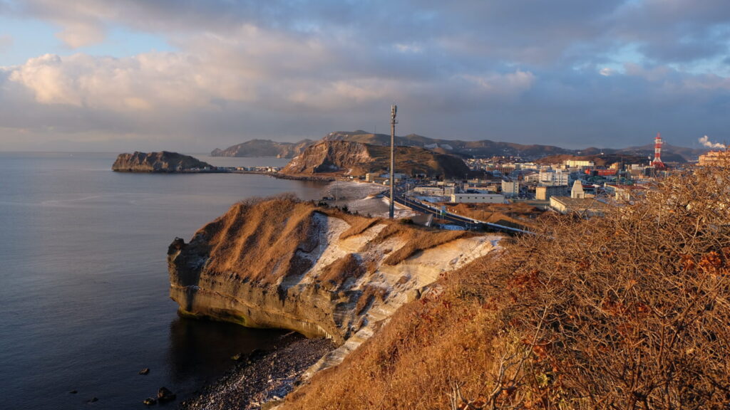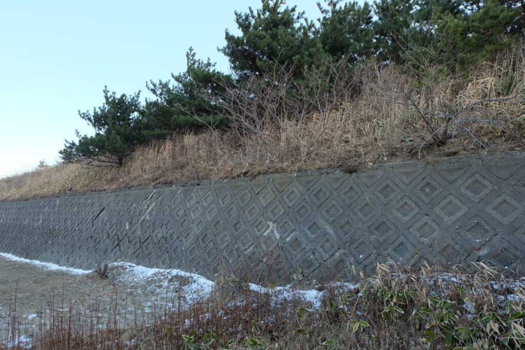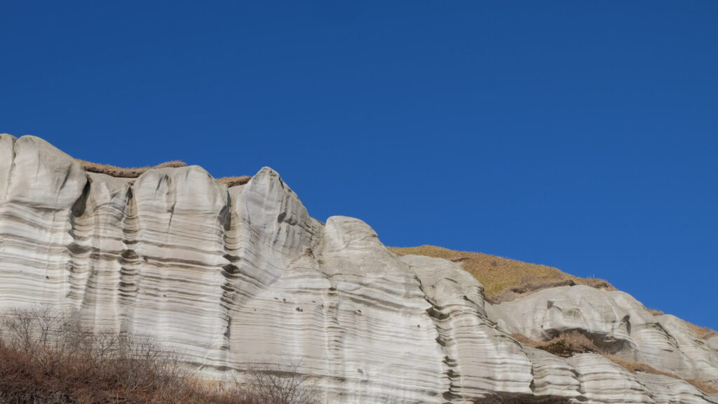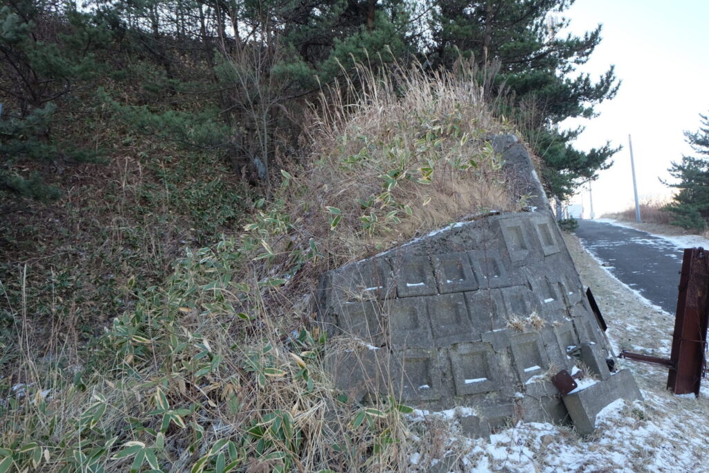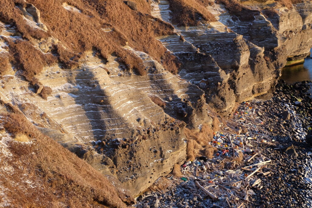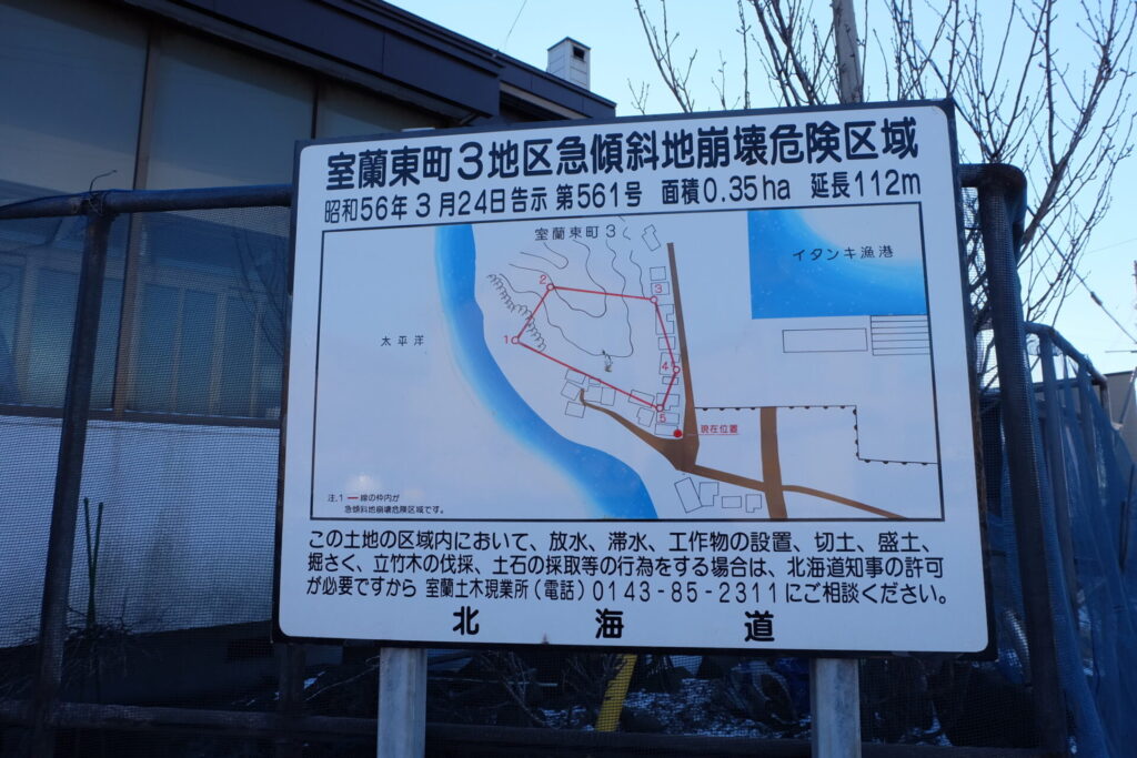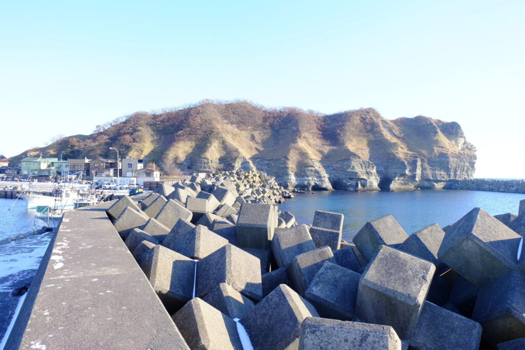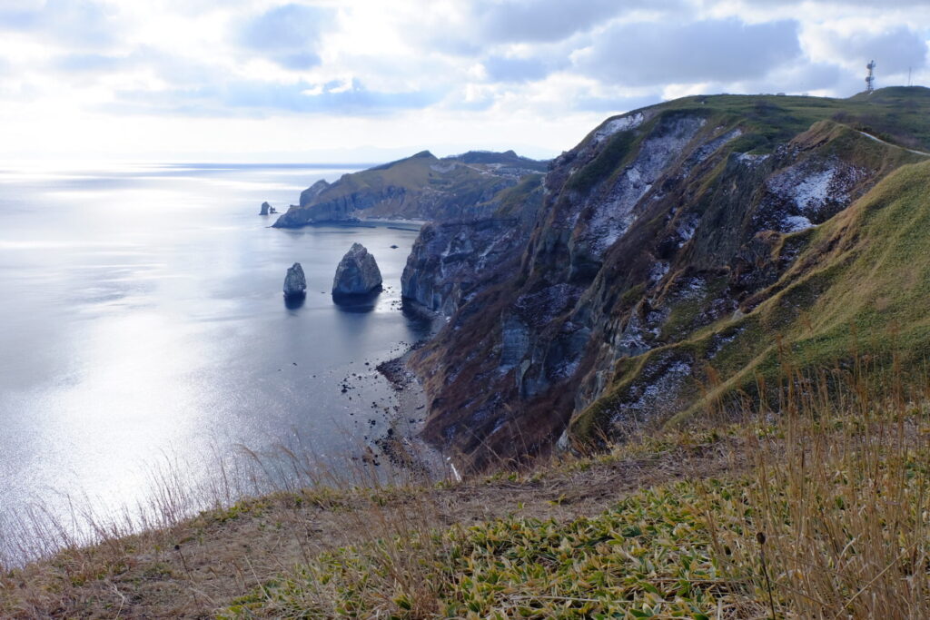 ▼イタンキ岬の断崖は北海道から「急傾斜地」に指定されている。