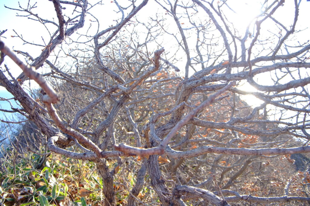 ▼匍匐前進でここまで来た。雑木が繁茂して立ち上がることもできない。カラスの巣があるのだろうか、やたらカラスが寄ってくる。しかし雑木が邪魔で攻撃してこない。