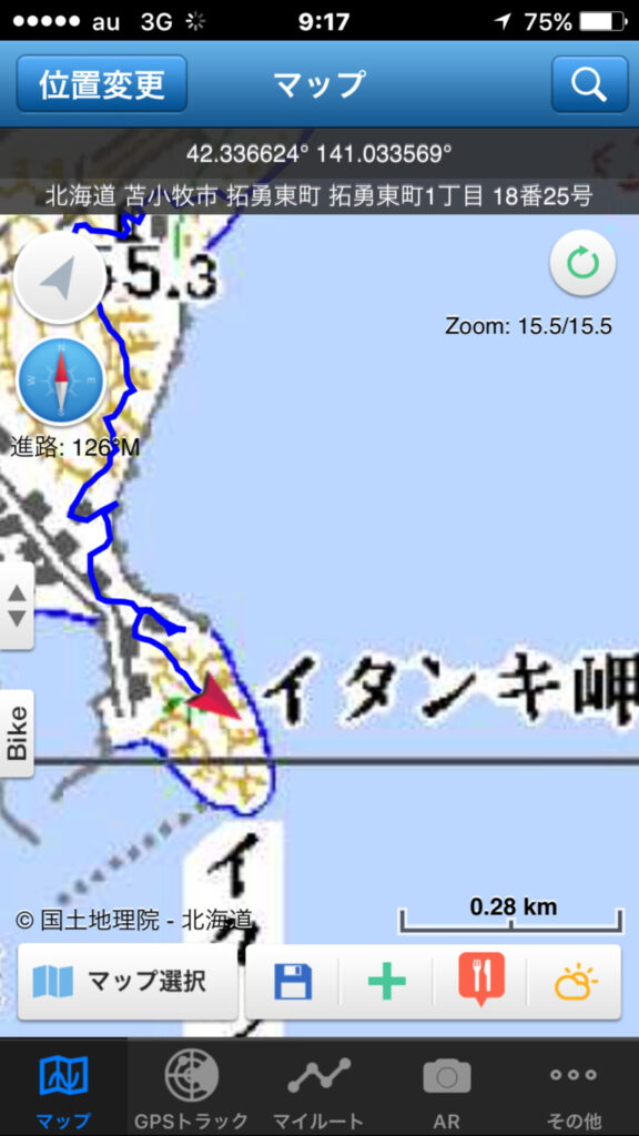 ▼輪西あたりで気が付いた!モンベルの手袋が片方(左)が無い(T_T)買って一週間もたってないのに。