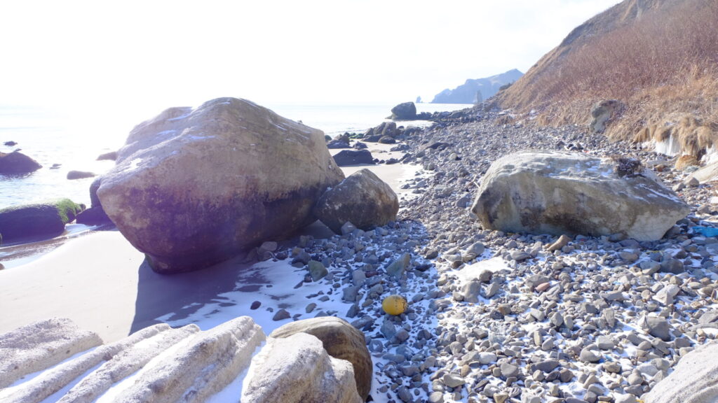 ▼チャラツナイ浜:トドの鳴き声みたいのが聞こえた。