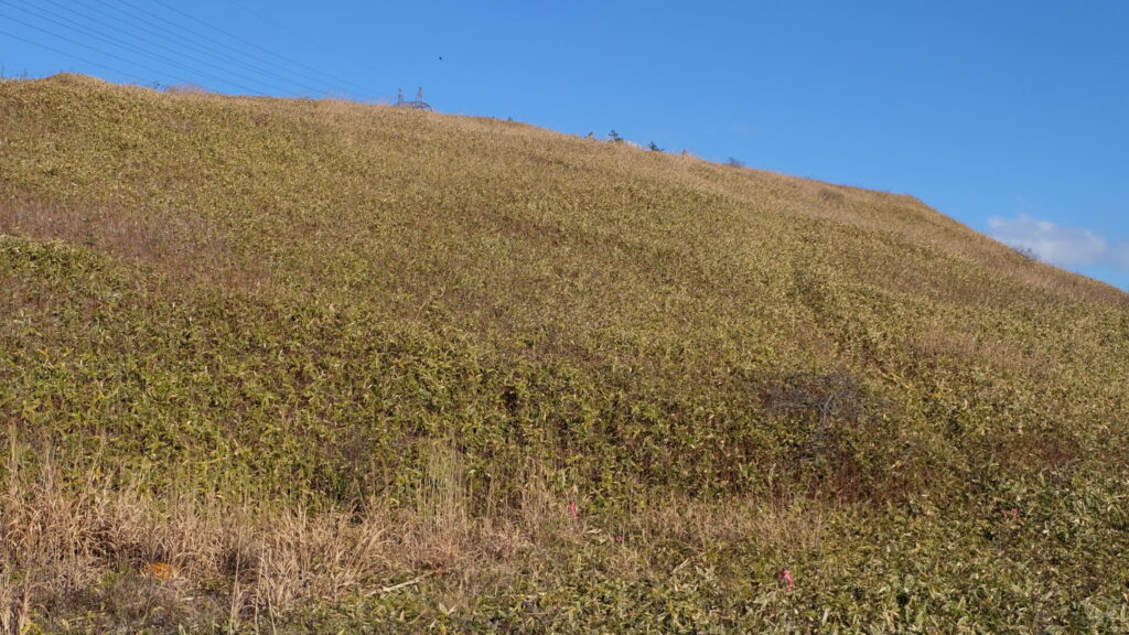 ▼まれに丈の長い笹もあるが、刈込は必ずされている。