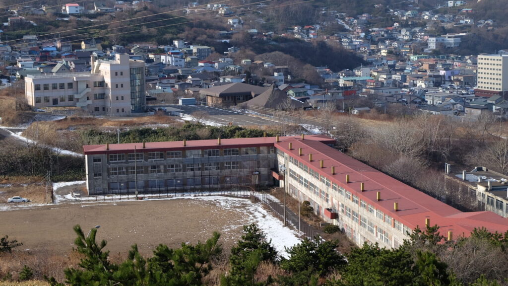 ▼学校らしい建物がそそる。残念だが、室蘭市青少年研修センターだ。