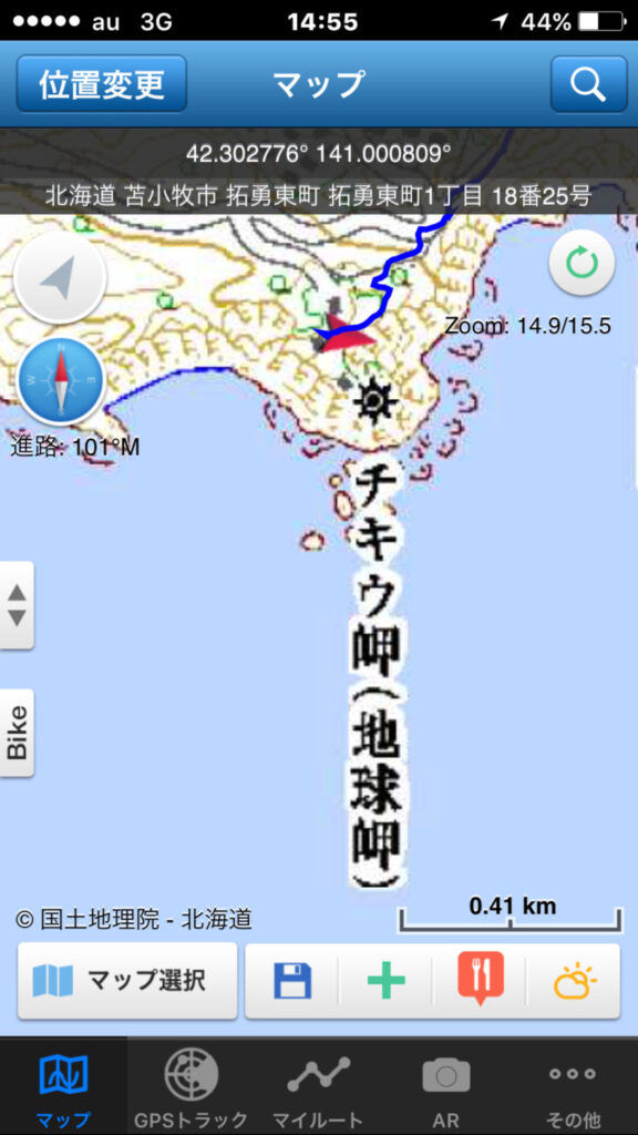 ▼登り切ったら地球岬だった。かなりショートカットしたが、体力の電池は切れた。