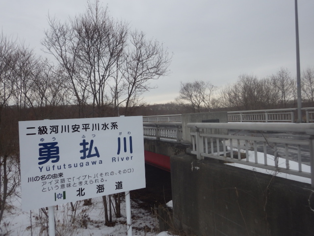 ▼ゴール!勇払川の夕振橋に到着。苦しかった。