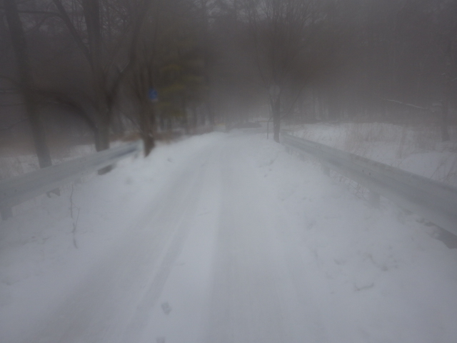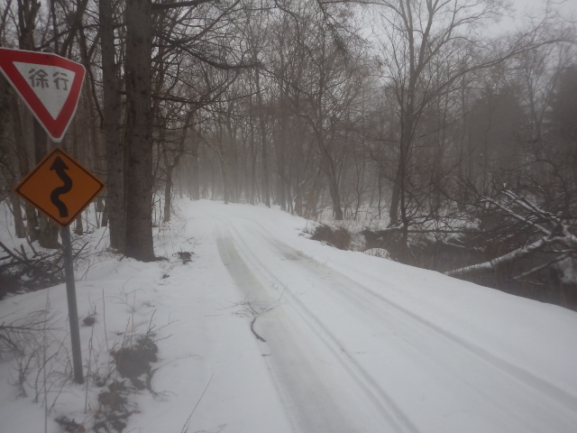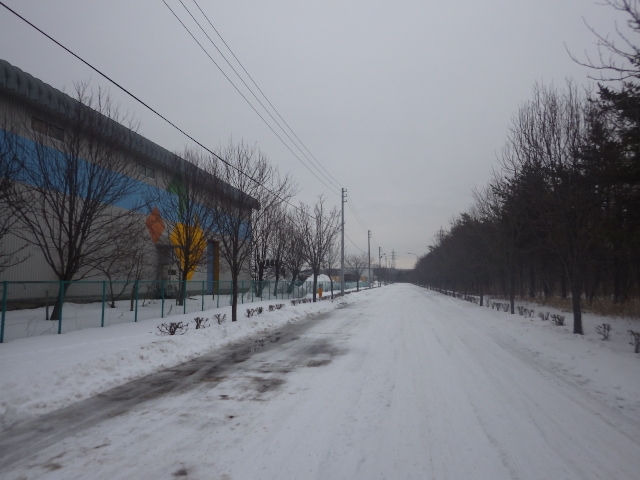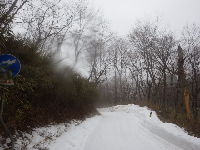 ▼あまりの雪おおさに明野工業団地の公道に出る。
