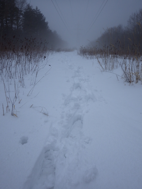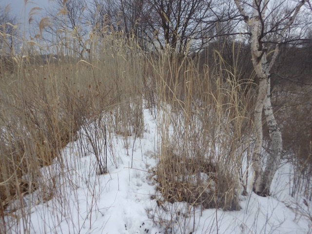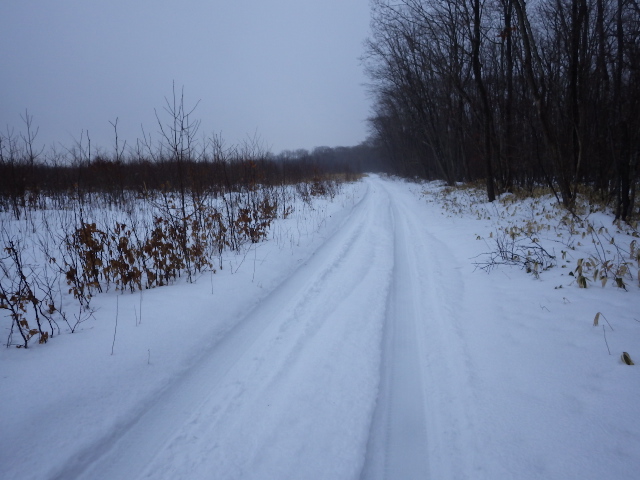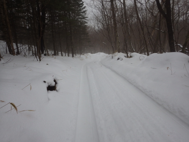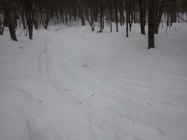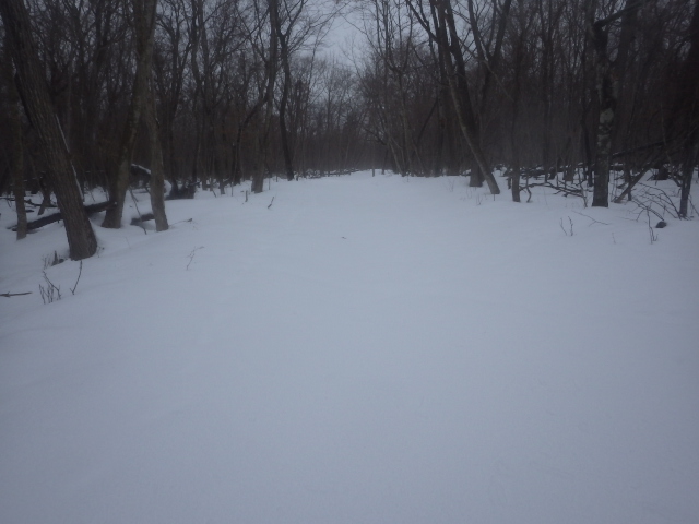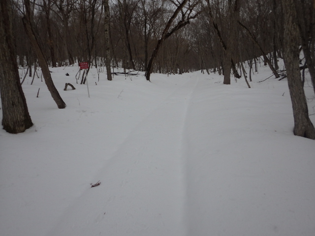 ▼誰ぞのスノーシューの跡がある。同類さんがいるのかな?