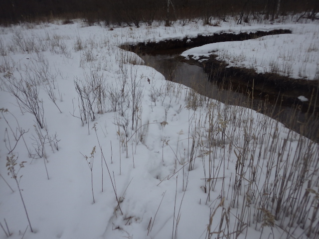 ▼湿地:植苗川沿いにさかのぼって歩く。