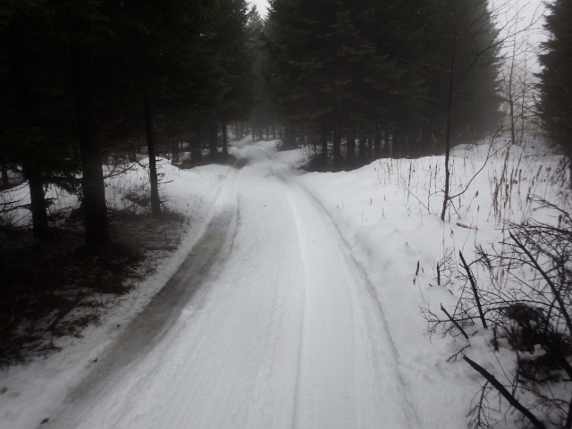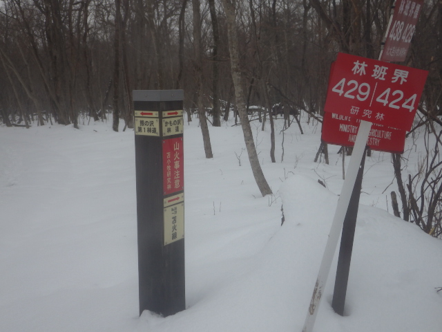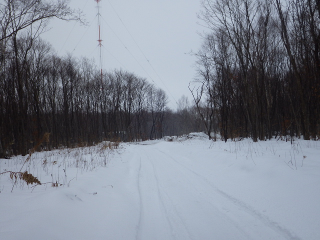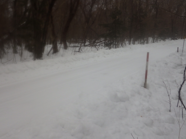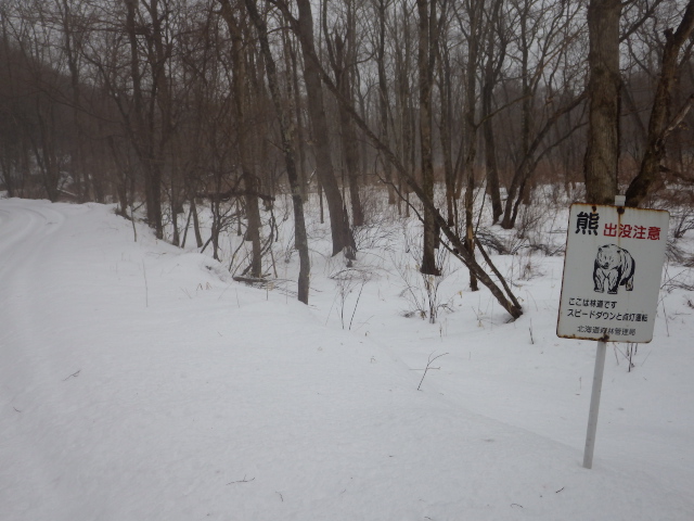 ▼「熊の沢第一林道」から外れて、除雪しているであろう取水口管理事務所への道路を目指すことにした。