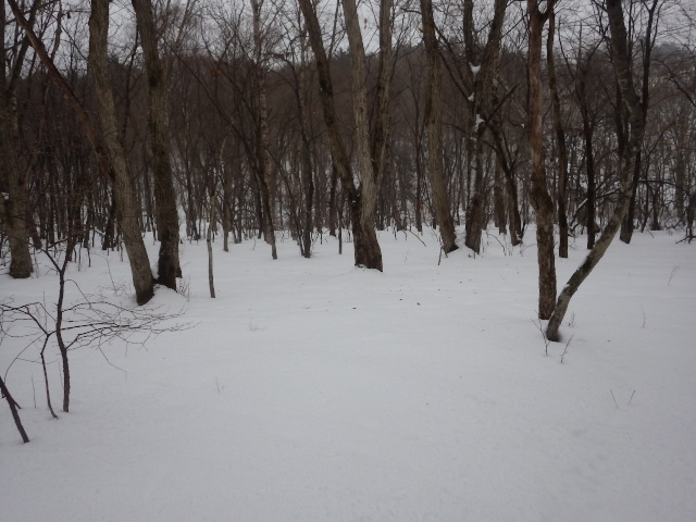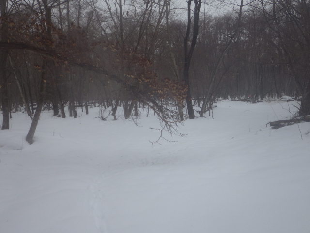 ▼どんどん雪が深くなる。引き返すかな。このまま進んでも帰りをどうすればいいのかと悩む。