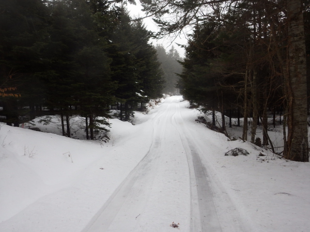 ▼やっぱり除雪してあった。ここまで約8KMスノーシューで重たい雪と格闘。往復する気力なし!