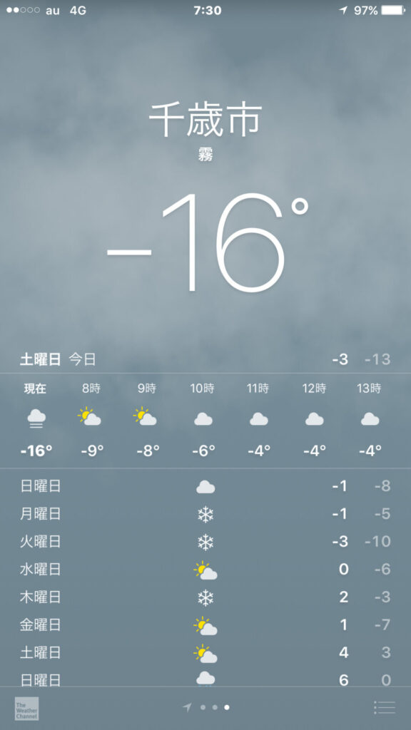 ▼朝7時半。「多峰古峰山」に登ろうか悩む。なんたって現在の気温はマイナス16度だから。