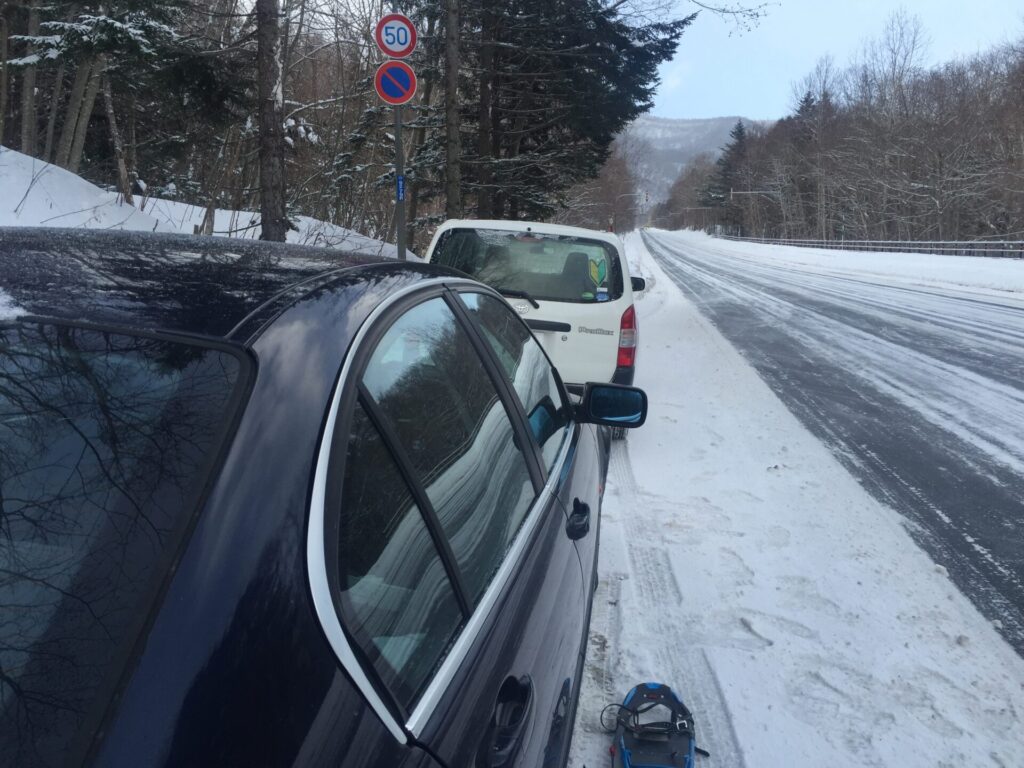 ▼イチャンコッペの登山口にもトレースあり。駐車2台。
