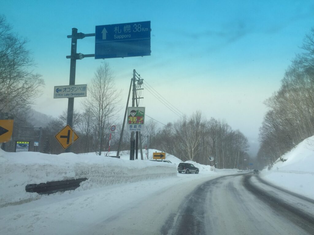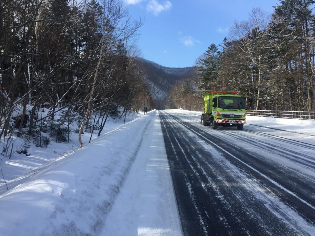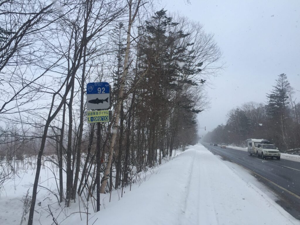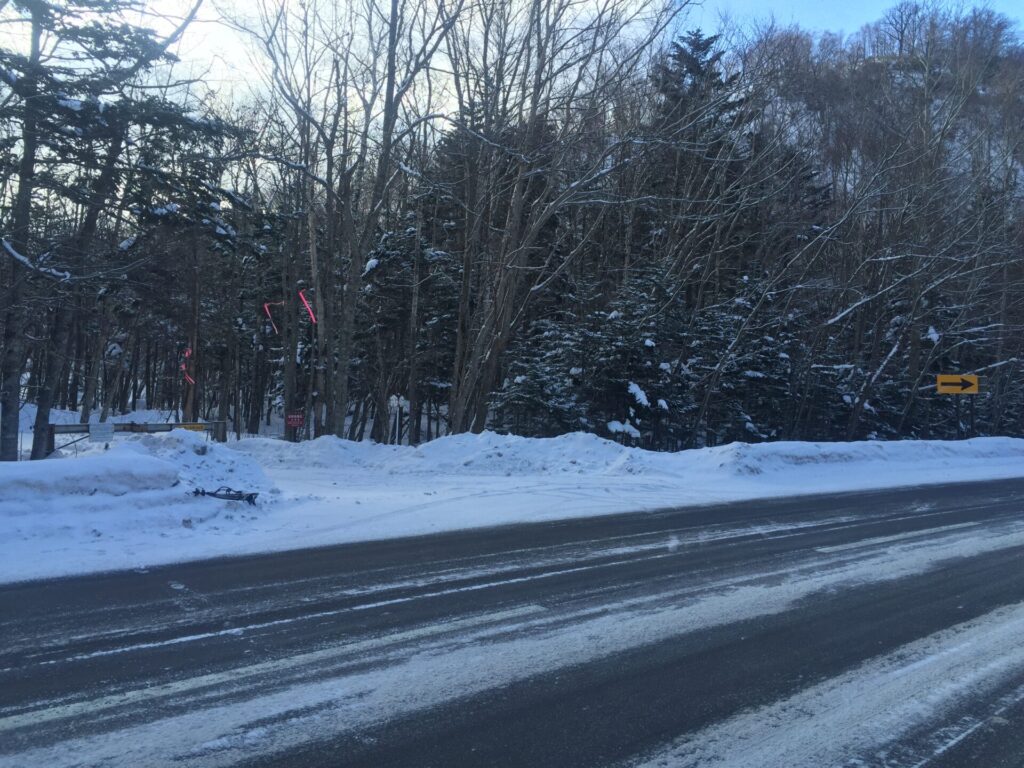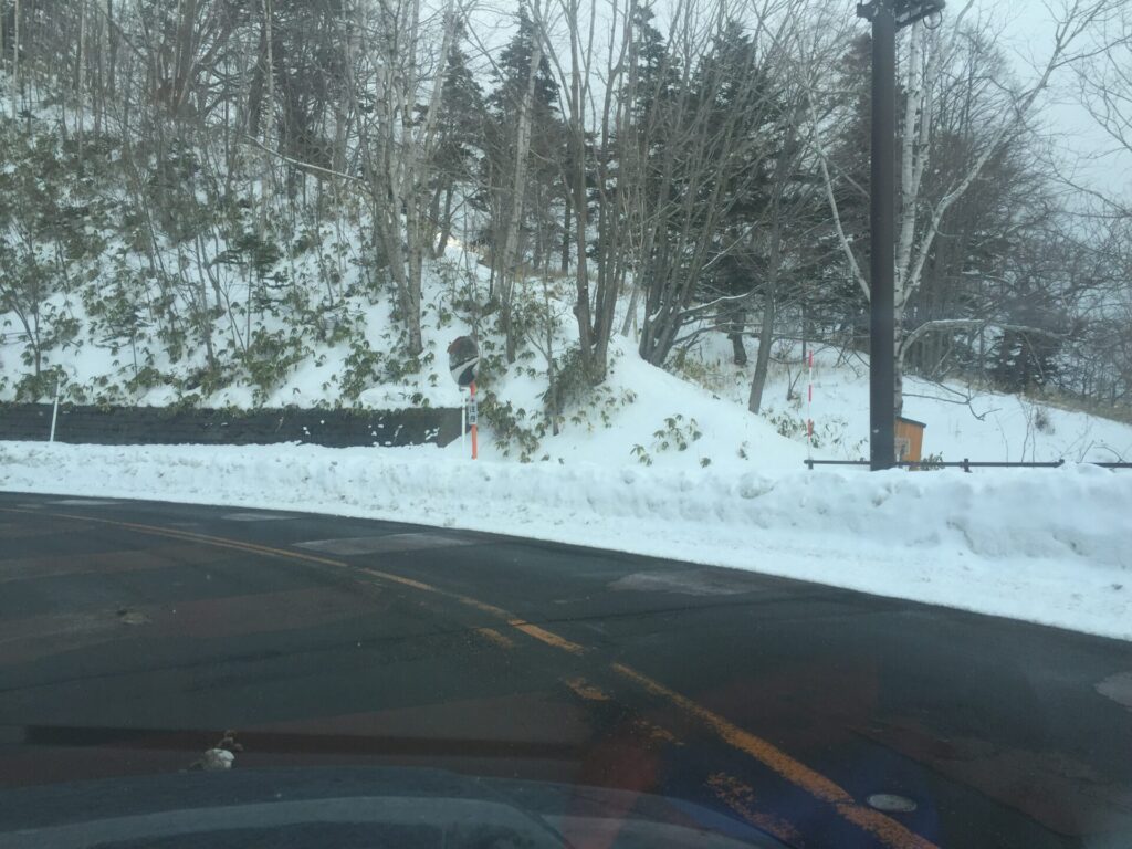 ▼オコタンへの道道入口の極そばの支笏湖向きには大きな除雪車旋回場があり、2台駐車。