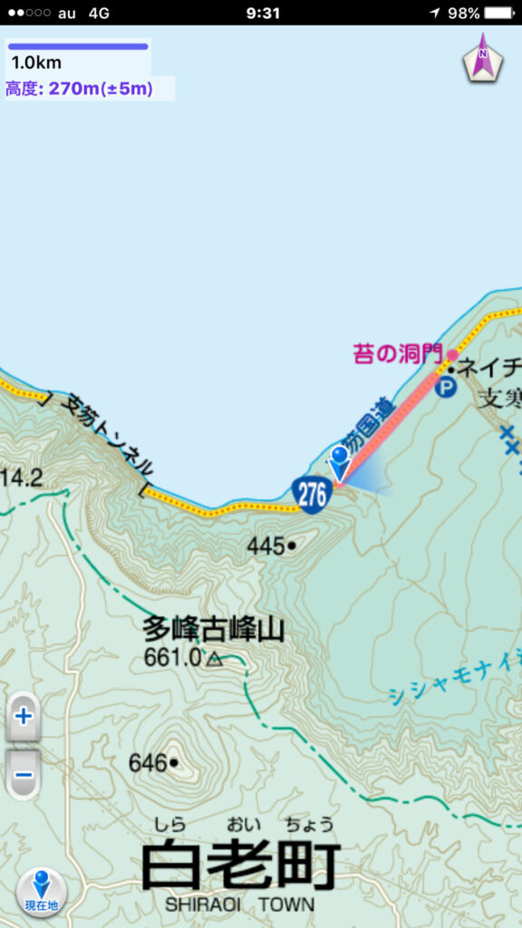 ▼苔の洞門のネイチャーセンター付近の幅の広い路肩に停める。