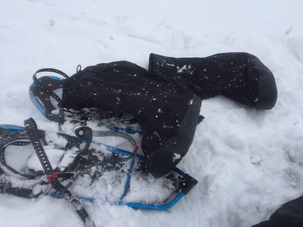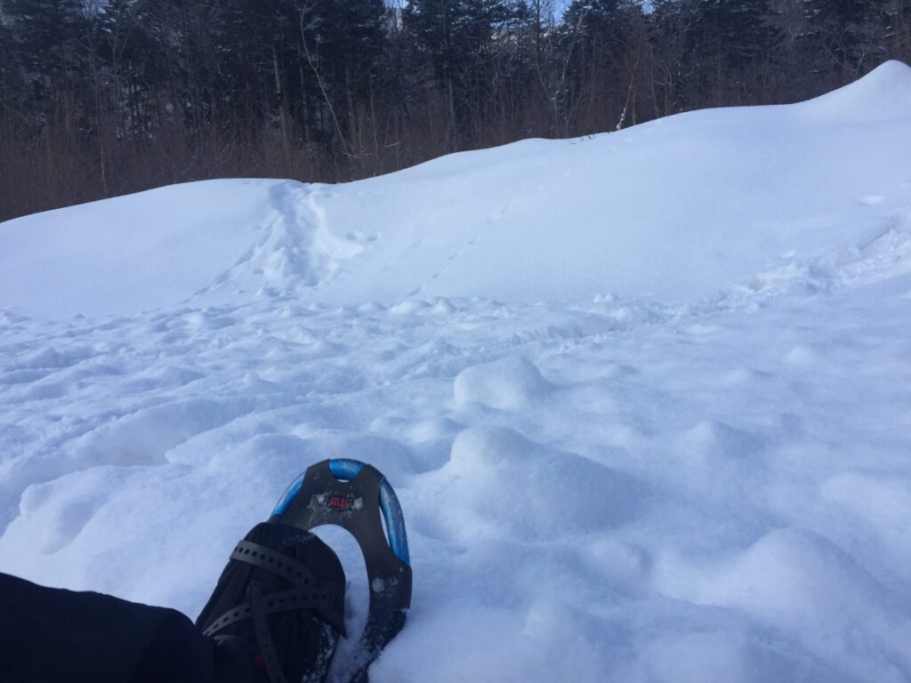 ▼ここからスノーシューを履く。今回はスノーブーツも履く。(靴ごと履くもの)