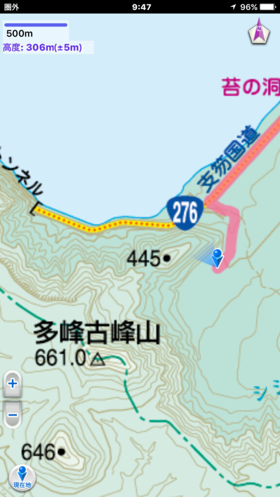 ▼国道276号の路側を歩く。