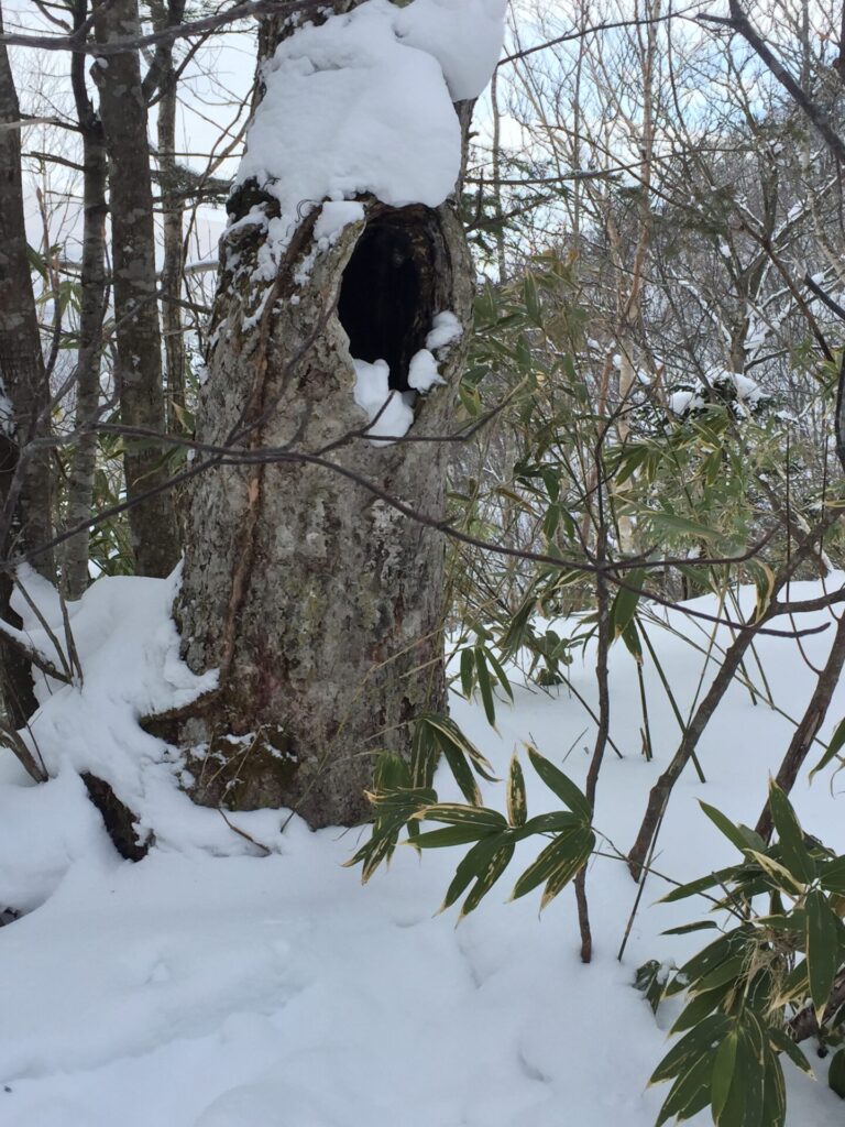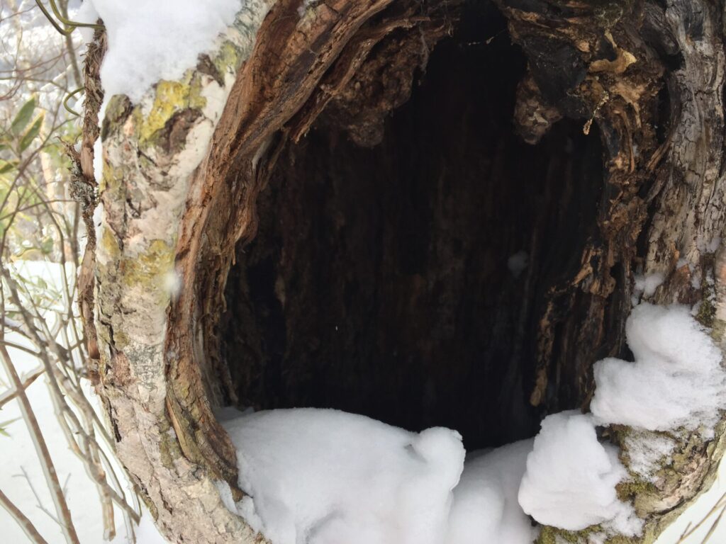 ▼樹木に開い穴、足跡が続いているのでみんな覗くようだ。