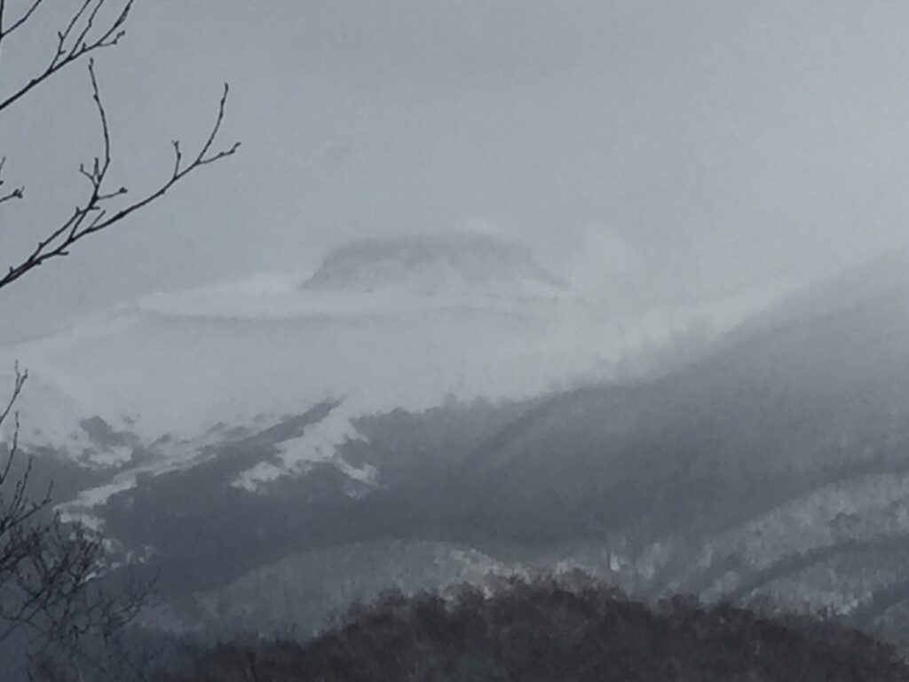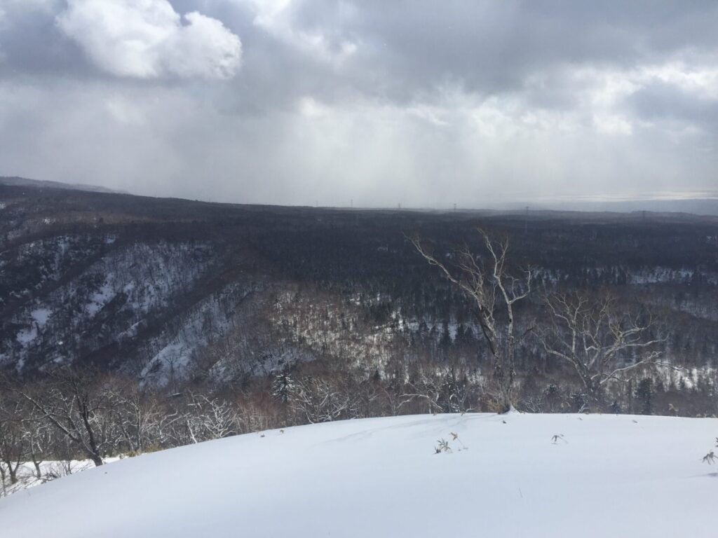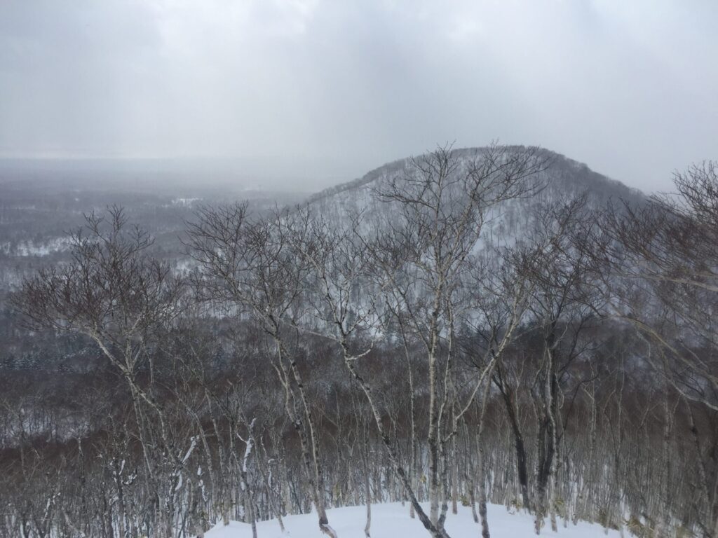 ▼多峰古峰山の頂上から。南にモユクンタプコプ山が見える。曇ってきた。