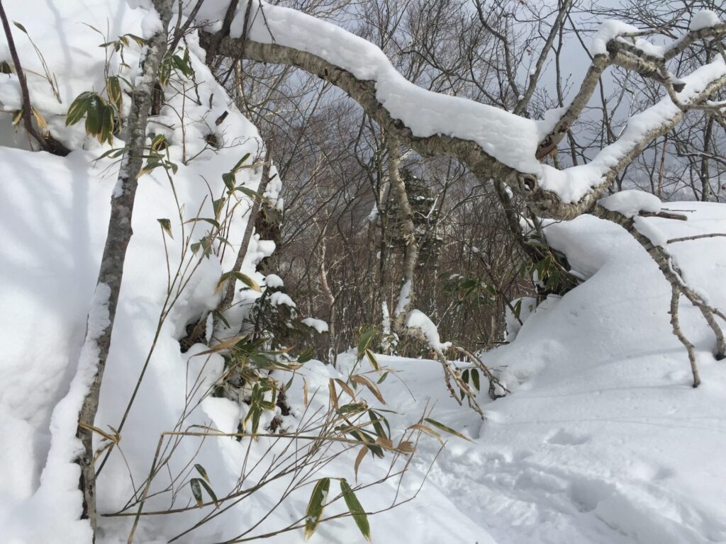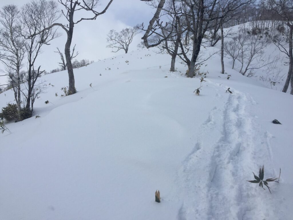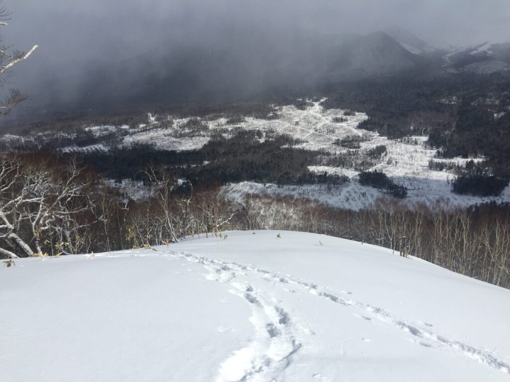 ▼こちらから降りていった足跡が続く。これは行ってみたい。デポしたの失敗。