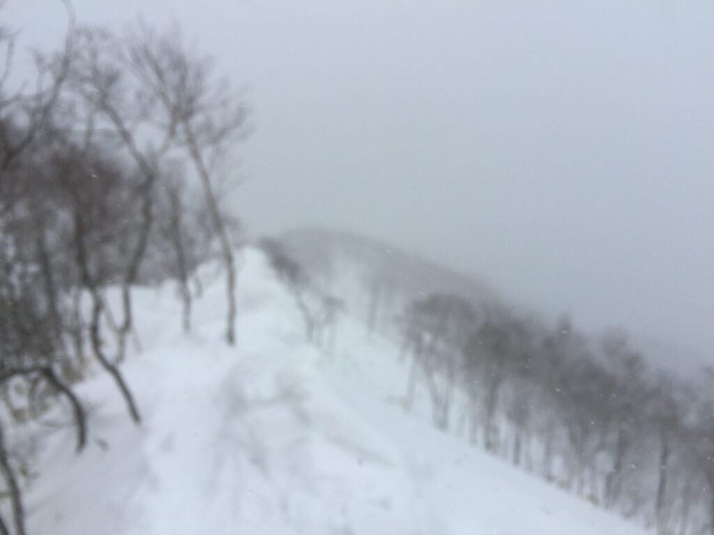▼最後の登りからちょっと風が強くなった。トレースが薄くなっている。ちょっと不安。