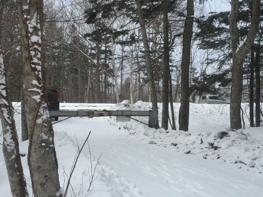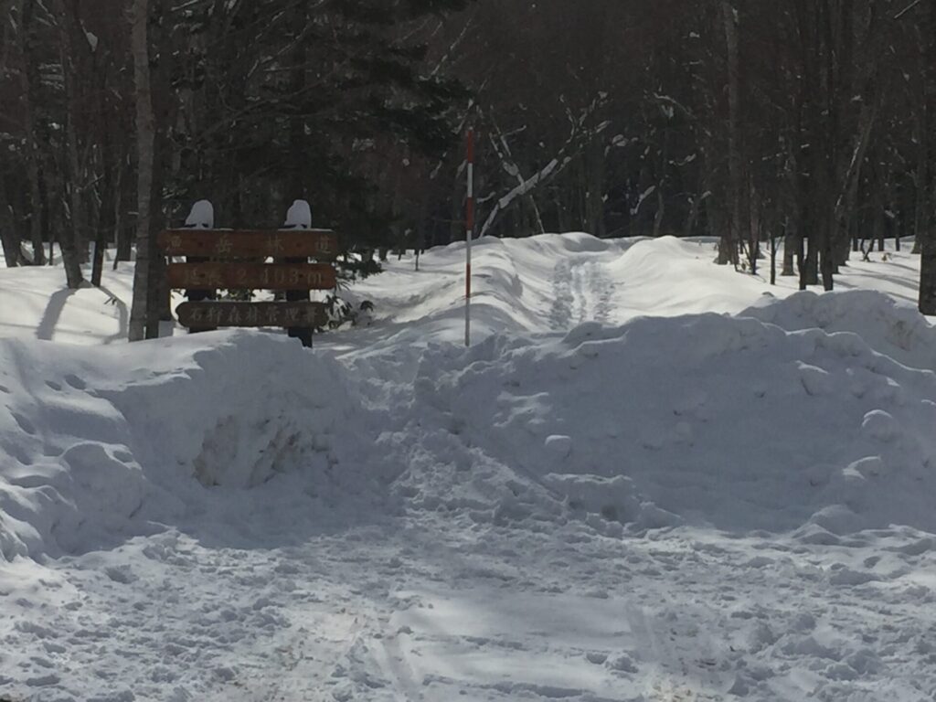 ▼林道入り口。除雪してあるじゃないか(-_-)
