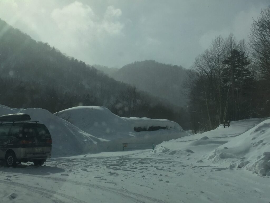 入口の林道そばには停められないと聞いていたので2km手前の、