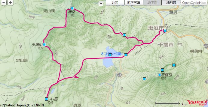 ▼コースは、オコタン山⇒漁岳⇒小漁岳⇒フレ岳⇒オコタンペ湖の壮大なる計画だ!