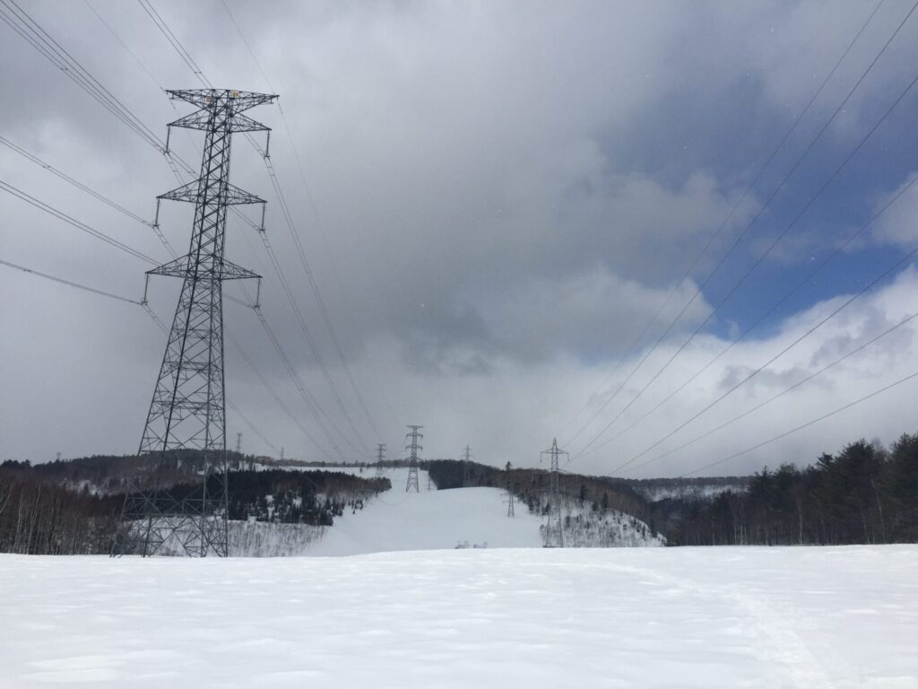 ▼丘が連なる送電線の下を行ってみようか?