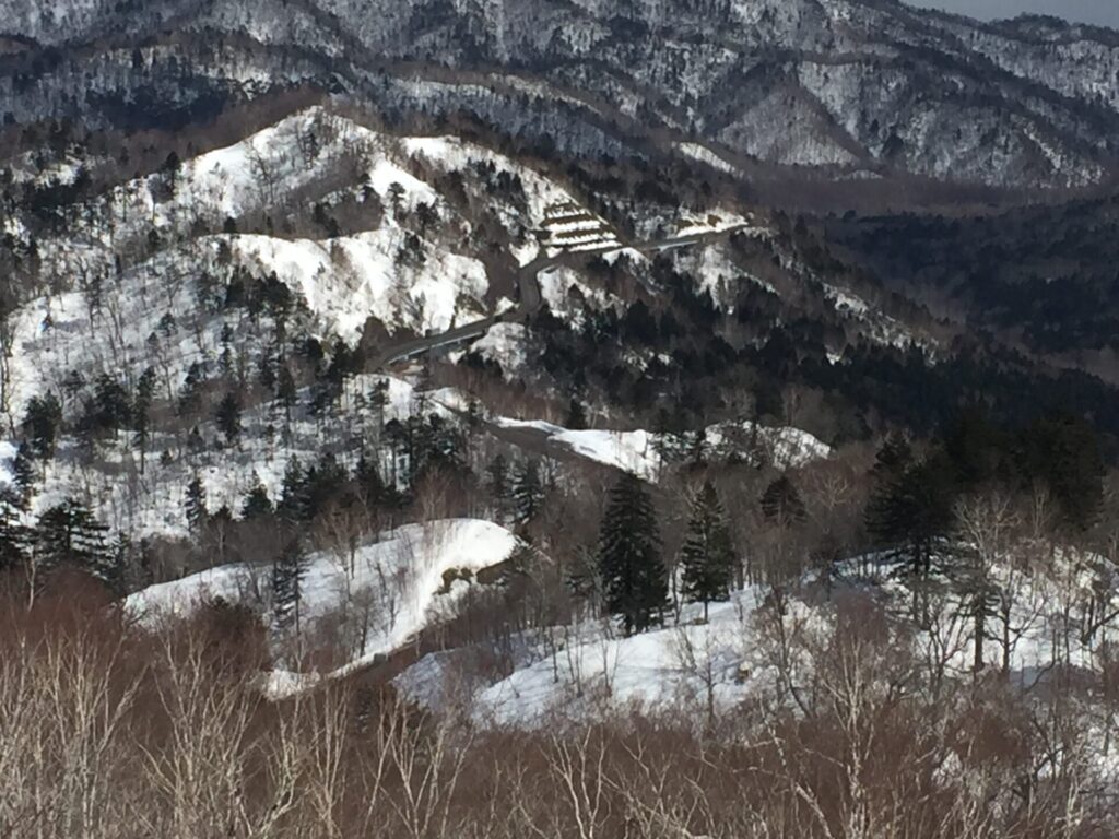 ▼旧道沿いに下りで来たので、スキーは早い!