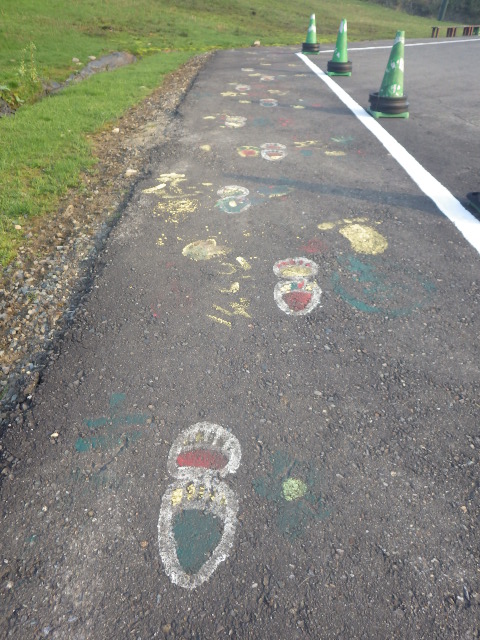▼標識多すぎ! 頂上から自転車スタート