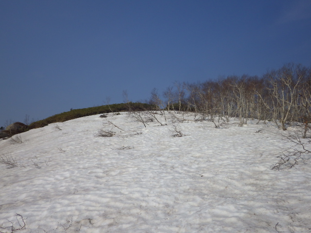 ▼2合目:「佐幌岳」頂上が見えてきた。