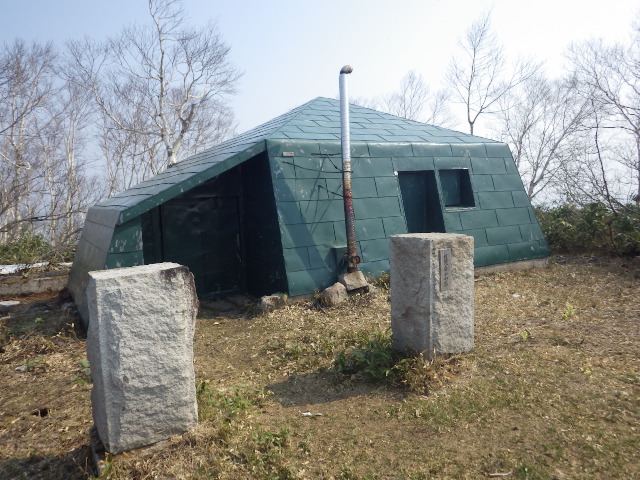 ▼頂上から下るとすぐに山小屋があった。