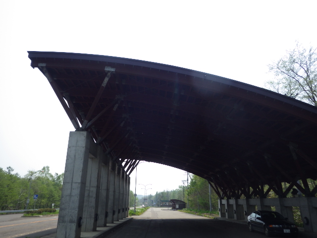 ▼国道38号のふもとのシェッドのある駐車帯。トイレもきれいで紙もある。ここからスタート!