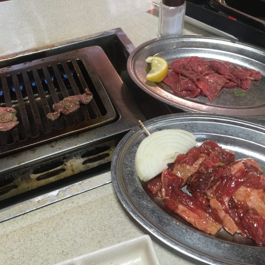 ▼ジンギスカン定食とタンを注文! ライスをお代わりした。もちろん飲み物はジョッキーで水!