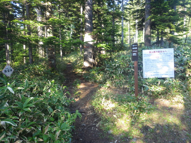 ▼ゲレンデをかなり上ってゆくと、「白湯自然探索路」の入り口あった!