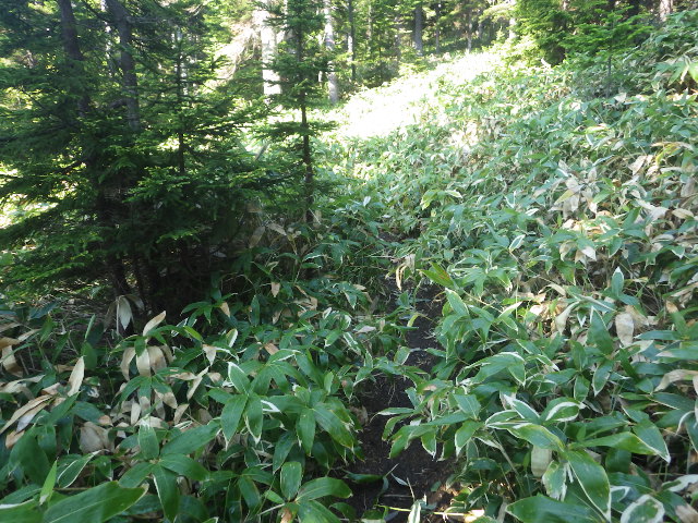 ▼すすむと、笹かぶりが延々と…この調子だと8時に頂上は厳しいかも!