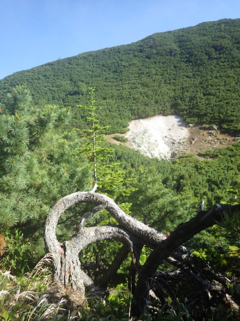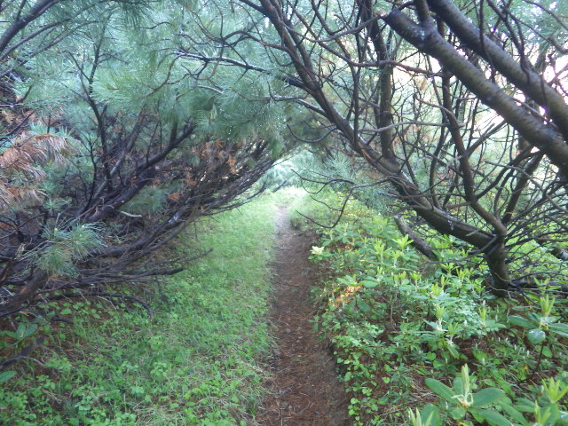 ▼四合目:笹かぶりのあとの試練は、ハイ松くぐりとなる。
