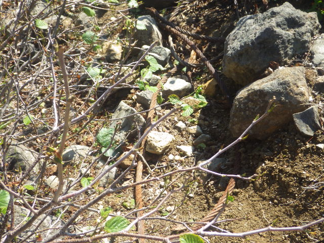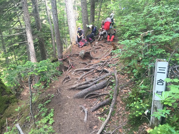▼二合目の位置は、ここのはずだが標柱がない! 三人でじっくり探したが… あきらめる。