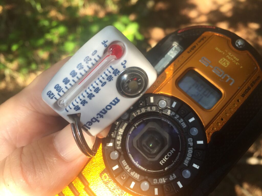▼GPS機能付きカメラの高度計は、いつの間にか1000mを越えた。気温は23度程度。