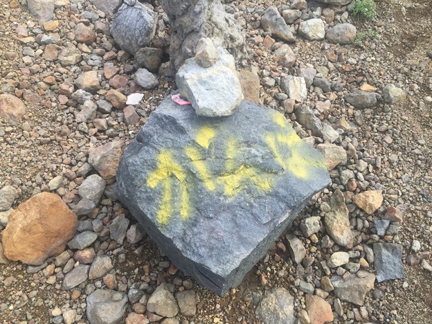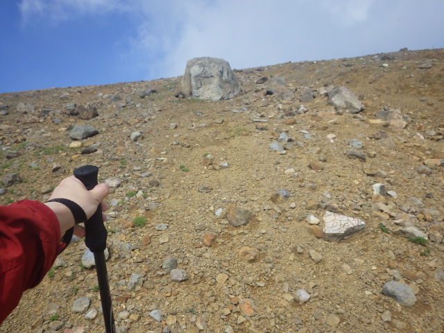 ▼位置:ガレ場、オンネトーコースで登っている”マスター・オブ・どんぐり”から頂上に着いたとの知らせあり。急ぐが、自分自身の電池が切れてしまった感強し。