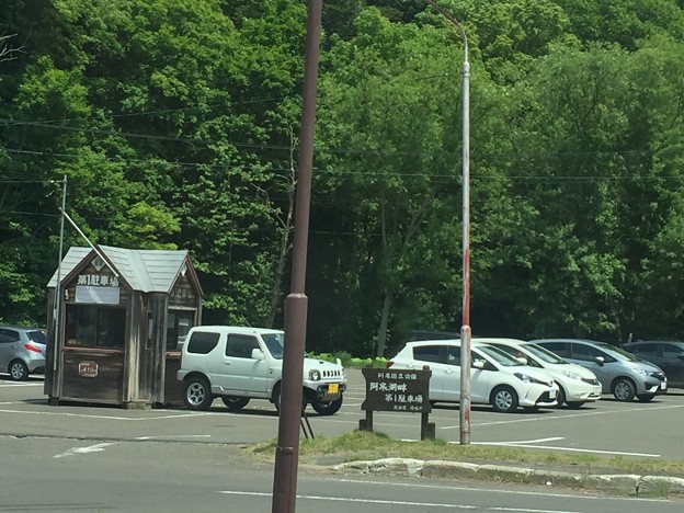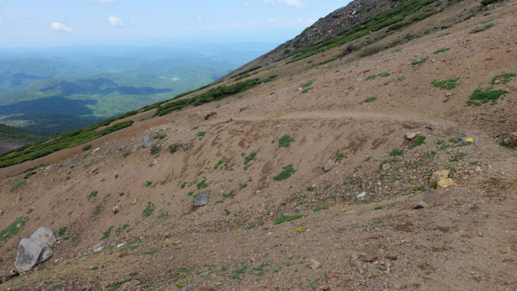▼七合目:ここからオンネトーが見えはじめる。ただし、六合目ではもう見えない。ビューポイント!