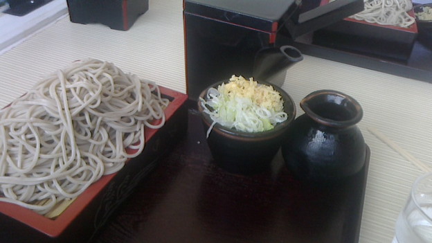 (2) この店のそばの量は、そう多くはないので大盛(+@100-)にしたほうが良い。さらに、今回は特盛(+@200-)にした。蕎麦店によっては、器に載らないということで断られる場合があるそうだ。