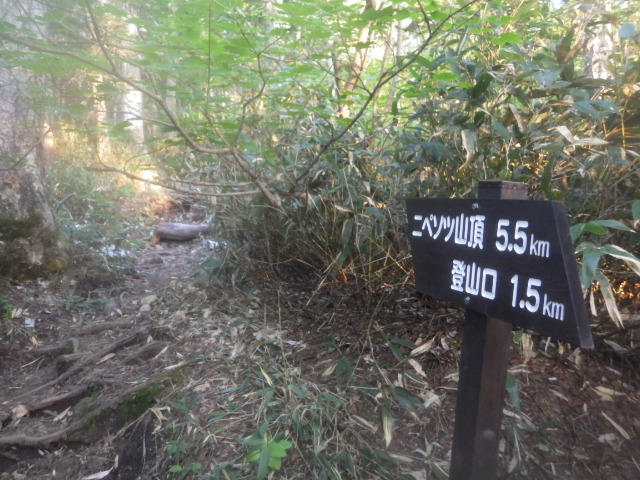 ▼直後に新しい看板:ニペソツ山頂まで5.5km