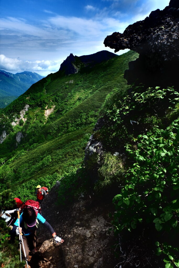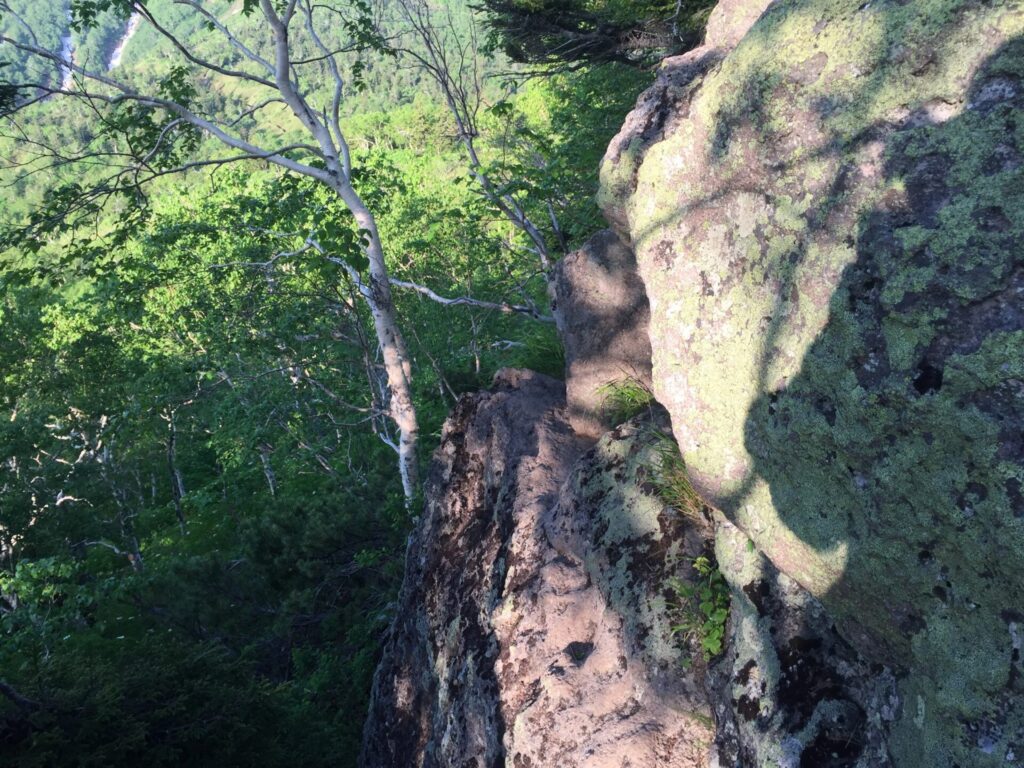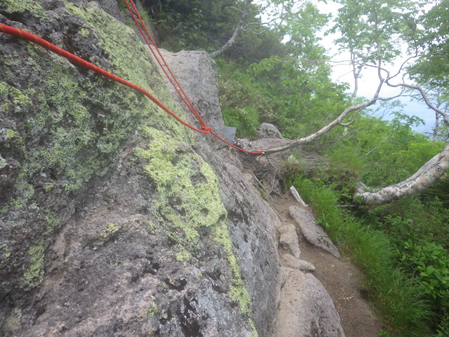 ▼岩場の細道:多分、団体さんようにインストラクターが設置したんだろう。