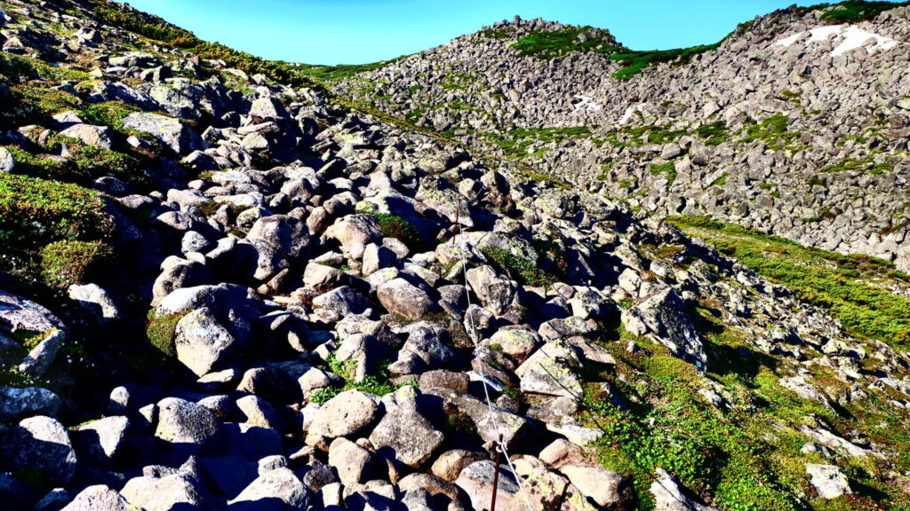 ▼実際の一番くぼんだ場所はこのあたり。地図ではテント場をコルとしている。