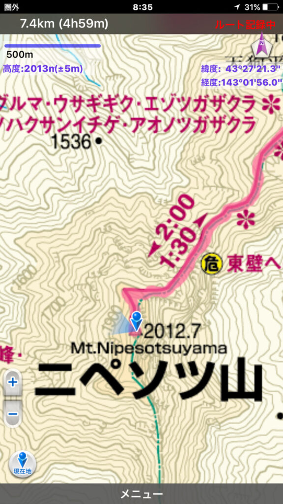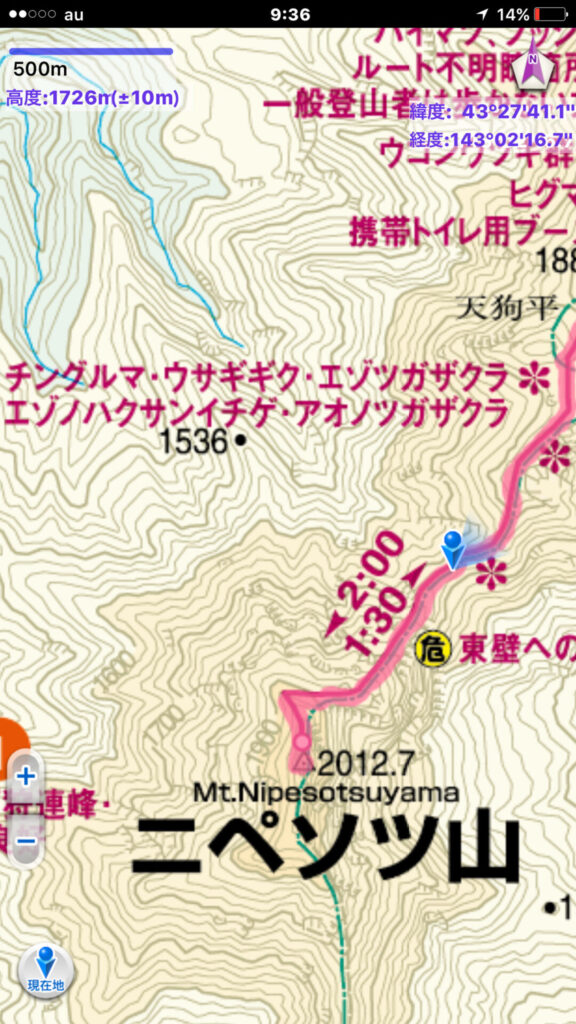 ▼ニペソツ頂上まであと2.5km。トイレブース有