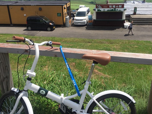 今日は昼からゴルフ。その前に軽く歩く。牧場の頂上にあらかじめ自転車をデポ!