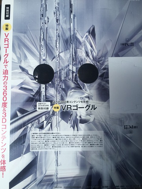 ▼思い出した。毎月定期購読している日経PC21 2016年9月号(780円:いつもは690円なのでゴーグル代が加算されているのか)に付録でついてきたはずだ!