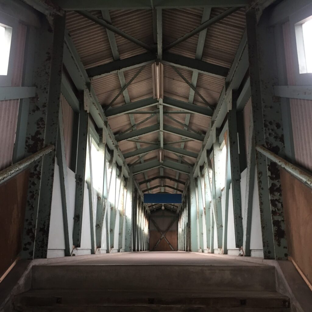 ▼跨線橋より、右手は埋め立てられて国道235号が走っている。