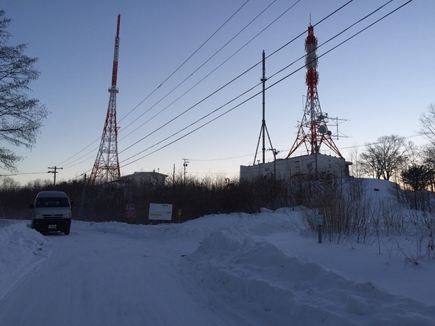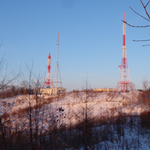▼十勝が丘は、この電波塔より300m先のあのポコ。雑木が多くて進みにくい。
